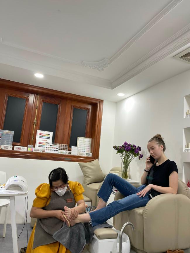 - MASSAGE CHÂN : những động tác xoa bóp nhẹ nhàng đến ấn huyệt mạnh kết hợp với tắm nước nóng tẩy tế bào chết hoặc đắp mặt nạ dưỡng chân.